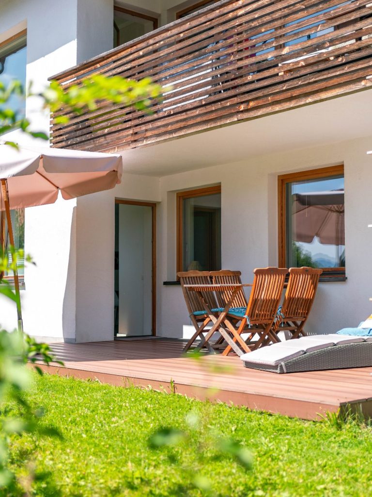 Ob auf der Terrasse oder im Garten: Sie können den freien Blick auf die Berge genießen und auf der Terrasse frühstücken und entspannen. Schatten findet Ihr im Garten oder unter dem Sonnenschirm.