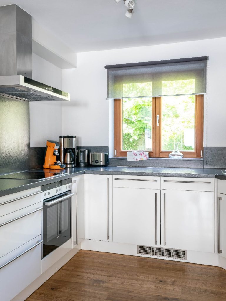 im offenem Wohnraum mit großer und voll ausgestatteter Küche